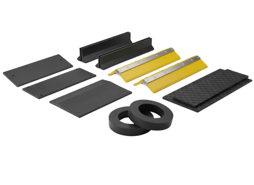 Impact bars, skirt rubber, wear pads